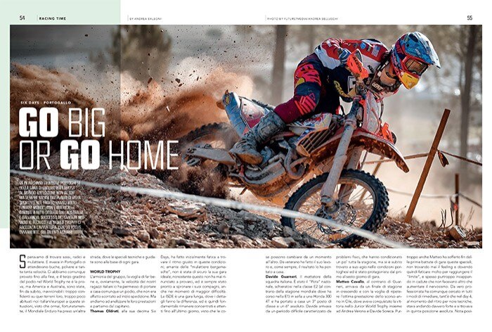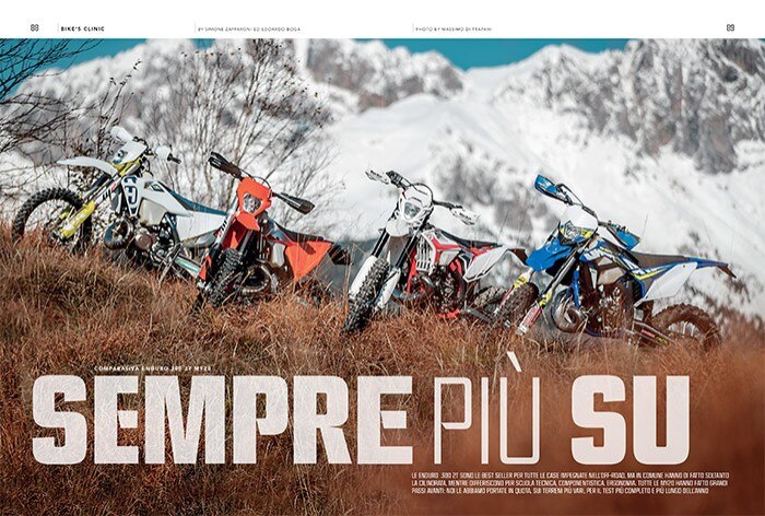 La cover n. 127 è dedicata al ritorno di Fantic nel mondo dell’off-road specialistico: la nuova arma si chiama XX nella versione da Cross e XE in quella da Enduro ed utilizza la base tecnica della Yamaha 125 2T. Spazio poi alle comparative: da un lato le Enduro 300 2T - Beta, Husqvarna, KTM, Sherco – dall’altro la sfida in famiglia tra i Minicross KTM con in confronto epocale tra il motore a miscela e quello elettrico.