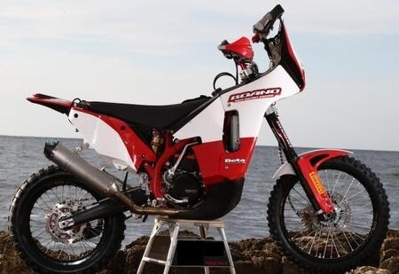 Una moto agile e molto compatta nonostante una capienza totale di 35lt.di benzina. Il motore RR 450 è stato rivisitato in collaborazione con la casa madre in versione Rally per ottenere maggiori prestazioni senza gravare sull'affidabilità. Cassa filtro e filtro aria sono stati ridisegnati e riposizionati. Ora il filtro è in posizione orizzontale al centro della sella. Questo permette una migliore aspirazione, aria più pulita e migliori prestazioni anche nelle condizioni più difficili. Ogni particolare è stato studiato per ottenere il massimo del rendimento con il minimo ingombro e peso.