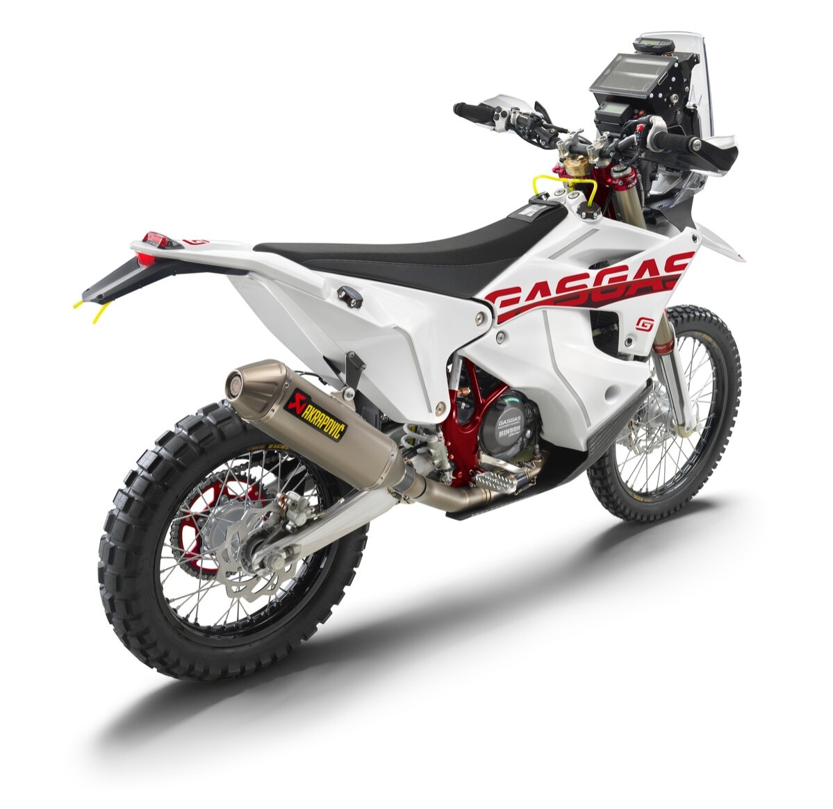 A completare il pacchetto provvede una selezione della miglior componentistica aftermarket, montata di serie già in fabbrica. Parliamo di prestazioni, non di estetica: piastre forcella X-TRIG, freni maggiorati Brembo, uno scarico Akrapovič e pneumatici Continental TKC 80. Per ottenere la massima durata abbiamo poi previsto una corona Supersprox Stealth, un manubrio Neken e una cover frizione Hinson con il logo GASGAS e un kit adesivi facilissimi da applicare sulla moto se necessario.